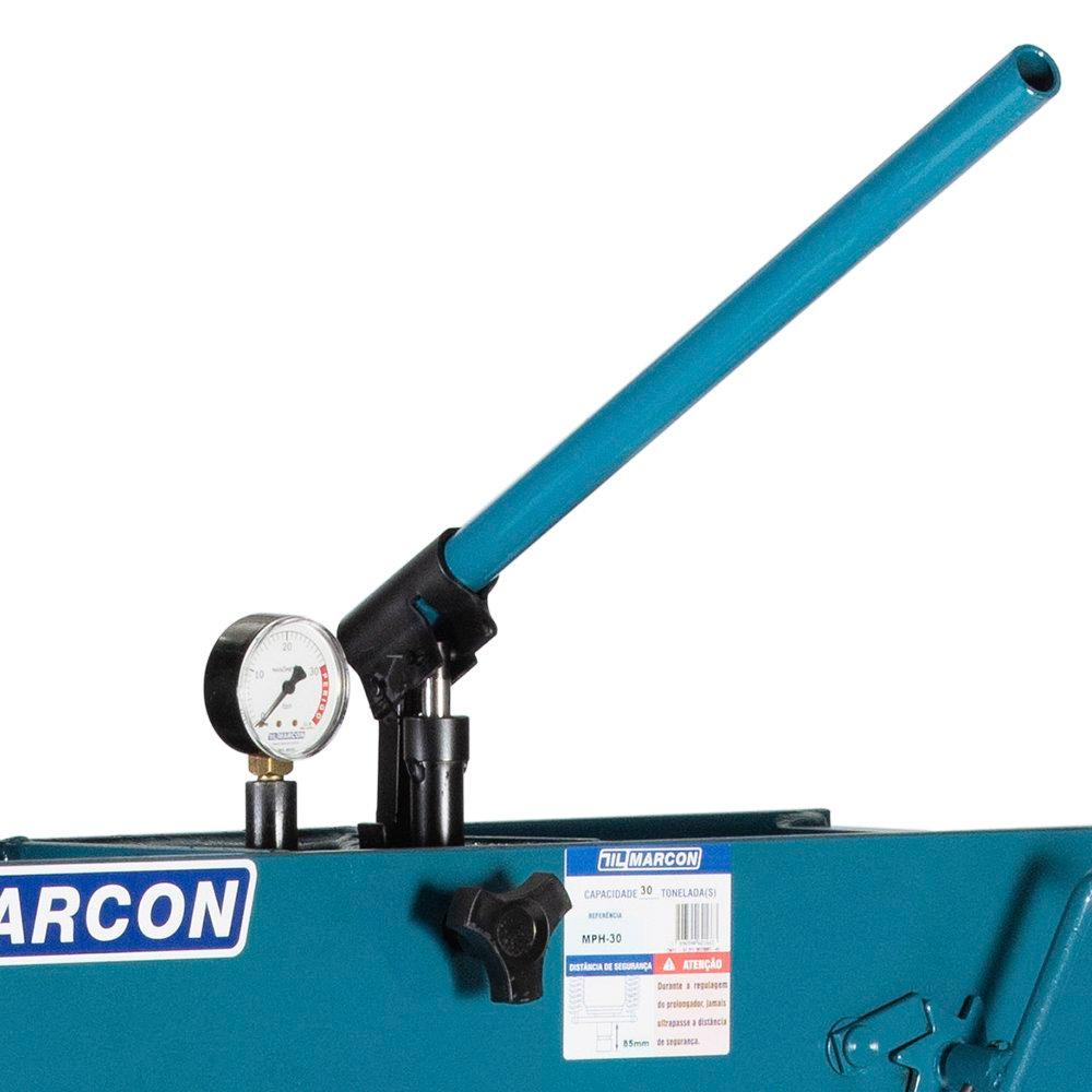 Loja do Mecânico - O que você precisa, nós temos! As prensas hidráulicas da Marcon são resistentes, robustas proporcionando confiança aos seus operadores. Comprimento Interno: 585mm Largura Interna: 164mm Altura estrutura: 1430mm Comprimento da base: 540mm Largura da mesa (int./ext.): 184/210mm Distância entre mesa e pistão(int./ext.): 75/850mm Curso do pistão: 130mm Peso: 124Kg Dimensões: 738 x 180 x 1530 mm (C x L x A) Capacidade: 30 T Garantia: 6 Meses