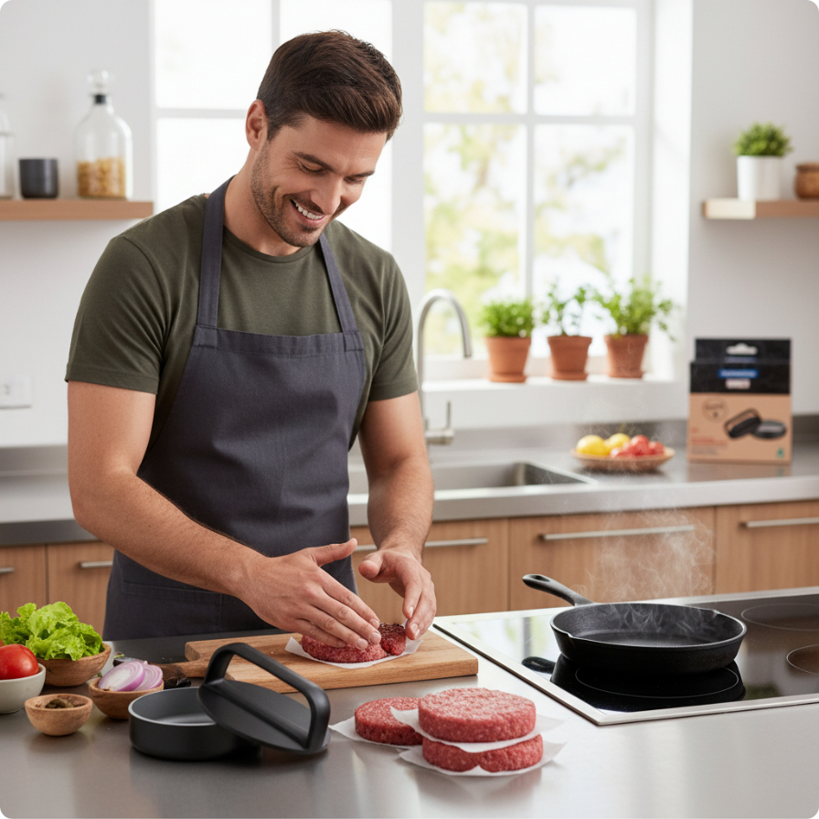 A Hamburgada Perfeita Começa Aqui! Sabe aquele hambúrguer de hamburgueria, perfeitamente redondo, suculento e que dá água na boca só de olhar? Aquele que reúne os amigos e transforma qualquer noite em um evento especial? O segredo para essa perfeição agora pode estar na sua cozinha. Chega de hambúrgueres disformes que desmontam na chapa. Com o Modelador e Prensador Tramontina Black Burger, você se torna o mestre hamburgueiro, criando obras-primas artesanais com a facilidade e a precisão que só uma ferramenta de qualidade pode oferecer. Prepare-se para elevar o nível da sua cozinha e impressionar a todos com hambúrgueres caseiros dignos de um chef! Descrição Detalhada do Produto Eleve sua experiência culinária com o Prensador de Hambúrguer Tramontina Black Burger. Projetado para quem busca praticidade sem abrir mão da perfeição, este utensílio é a peça-chave para moldar hambúrgueres uniformes e consistentes, garantindo um cozimento por igual e uma apresentação impecável. Seja criativo e explore novos sabores! Prepare hambúrgueres tradicionais de carne bovina, opções mais leves de frango, suculentas de porco ou deliciosas versões vegetarianas. A base em alumínio conta com o renomado revestimento antiaderente Starflon, que impede que a carne grude, facilitando a modelagem e a limpeza. O prensador em polipropileno preto oferece uma pegada firme e confortável, garantindo a pressão ideal para um hambúrguer compacto e perfeito. Padrão Profissional: Crie hambúrgueres de 10cm de diâmetro, todos com a mesma espessura e formato, para um cozimento uniforme. Versatilidade na Cozinha: Ideal para todos os tipos de carne (bovina, frango, porco) e também para receitas vegetarianas. Antiaderente Starflon: A base com revestimento interno e externo não deixa a carne grudar, facilitando o processo e a limpeza. Design Inteligente: O prensador de polipropileno é ergonômico, resistente e projetado para uma pressão eficaz. Qualidade Tramontina: Confiança e durabilidade de uma marca líder no mercado. Informações Técnicas Característica Especificação Marca Tramontina Linha Black Burger Material do Prensador Polipropileno de alta resistência Material da Base Alumínio com revestimento antiaderente Starflon (interno e externo) Diâmetro 10 cm Dimensões (C x L x A) 10,6 cm×10,6 cm×4,6 cm Peso 140 g Compatibilidade Pode ser levado à máquina de lavar louças e ao refrigerador Segurança Livre de PFOA, material atóxico Prós e Contras Prós: Padronização: Garante hambúrgueres sempre do mesmo tamanho e peso, cozinhando de forma homogênea. Facilidade de Uso: Processo simples e rápido para moldar, mesmo para quem não tem experiência. Limpeza Descomplicada: O antiaderente Starflon e a compatibilidade com a lava-louças tornam a limpeza extremamente fácil. Durabilidade e Qualidade: Materiais resistentes que garantem uma longa vida útil ao produto. Versatilidade: Perfeito para diversos tipos de ingredientes. Contras: Tamanho Fixo: O molde possui um diâmetro fixo de 10 cm, não permitindo variação no tamanho dos hambúrgueres. Quebrando Objeções "Será que a carne não vai grudar?" De forma alguma! A base de alumínio possui revestimento antiaderente Starflon por dentro e por fora, a tecnologia mais confiável para evitar que os alimentos grudem, facilitando a retirada do hambúrguer e a limpeza. "É difícil de limpar?" Pelo contrário, é um dos seus maiores benefícios! Além do antiaderente que já facilita muito, o produto pode ser colocado diretamente na máquina de lavar louças, economizando seu tempo. "O material é seguro para contato com alimento?" Totalmente seguro. O Prensador Tramontina é atóxico e certificado como livre de PFOA, um composto químico prejudicial. Sua saúde e segurança são prioridades. FAQ - Perguntas Frequentes Posso usar o prensador para fazer hambúrgueres recheados? Sim! Você pode colocar metade da carne, adicionar o recheio de sua preferência (como queijo ou bacon) e cobrir com a outra metade antes de prensar. Qual a capacidade em gramas para o hambúrguer perfeito? Recomendamos usar entre 120g e 150g de carne para obter um hambúrguer com espessura ideal neste molde. O material risca com facilidade? A base de alumínio com antiaderente é resistente, mas recomendamos utilizar apenas utensílios de silicone ou plástico para manusear. Na limpeza, evite esponjas de aço ou materiais abrasivos para garantir a máxima durabilidade do antiaderente. Posso levar ao freezer para congelar os hambúrgueres já moldados? Sim, o material é compatível com refrigerador e freezer. Você pode moldar seus hambúrgueres e congelá-los para usar depois.