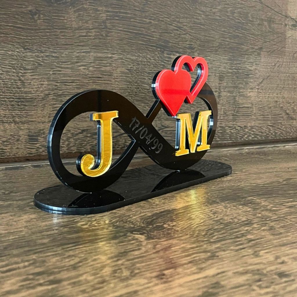 Surpreenda a sua pessoa especial com nosso símbolo do infinito personalizado, construído em acrílico cast em 4mm de alto brilho e resistência o produto leva sua grande beleza e brilho , podendo ser utilizada para decoração do ambiente. Conte conosco para proporcionar um momento especial e memorável a quem você ama. Medidas(cm) Altura: 10 Largura : 6 Comprimento : 20 Obs: Não se esqueça de nós passar as duas iniciais e a data especial a ser gravada
