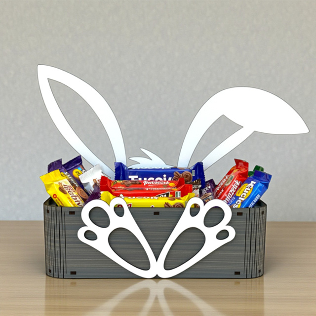 Presente Páscoa Cesta Coelho MDF - Porta Doces e Chocolates Caixa Mimos com Alças