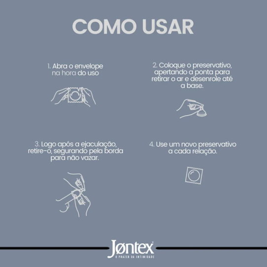 Preservativo Jontex Lubrificado com 3 unidades. Camisinhas de látex natural, lubrificadas para maior conforto e segurança. Proteção eficaz contra DSTs e gravidez, com toque suave para uma experiência segura e prazerosa. Testadas dermatologicamente.