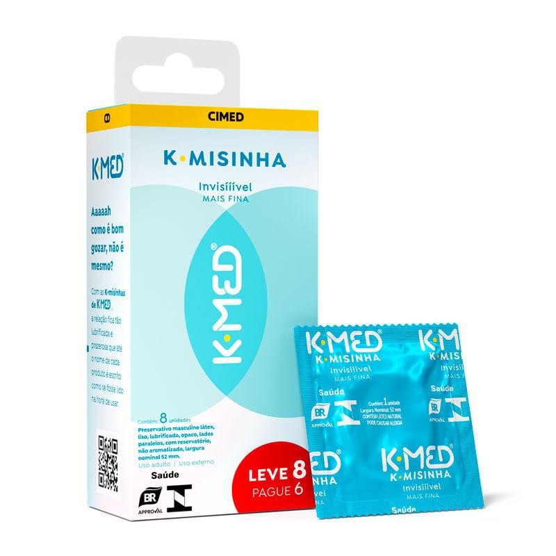 Preservativo Masculino Lubrificado K-Med K-Misinha Invisível Leve 8 Pague 6 Unidades