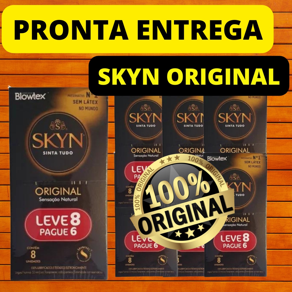 SKYN ORIGINAL LEVE 8 PAGUE 6 SEM LATEX SEM ALERGIA. Sinta tudo!A sensação de pele com a pele.Ultrafino e Ultramacio. Produzida com o SKYNFEEL®, um material NOBRE sem látex tecnologicamente avançado, comprovadamente conhecido por aumentar o estímulo e a sensação de pele com a pele. É tão macio e confortável que você mal percebe estar usando preservativo. Você e seu parceiro sentem tudo!Largura nominal: 53mmCor: Natural CONTÉM: 1 CAIXA DE SKYN ORIGINAL LEVE 8 PAGUE 6