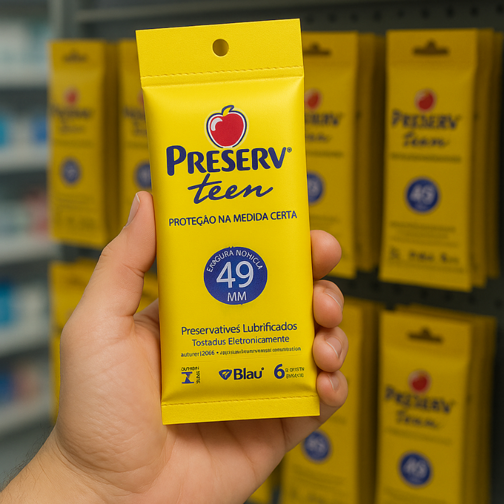 Preservativo Lubrificado Preserv Teen – Ajuste Ideal, Segurança e Conforto para Jovens O Preservativo Lubrificado Preserv Teen foi desenvolvido especialmente para o público jovem, oferecendo segurança, conforto e um ajuste mais preciso para quem está iniciando a vida sexual. Com a menor largura nominal do mercado (49 mm), proporciona maior adaptação anatômica, aumentando a confiança e a proteção durante o uso. Imagine viver suas primeiras experiências com mais tranquilidade, sabendo que está protegido contra gravidez não planejada e doenças sexualmente transmissíveis. O Preserv Teen combina látex de alta qualidade, lubrificação à base de óleo de silicone e reservatório na ponta, garantindo conforto, sensibilidade natural e segurança desde o primeiro contato. **Benefícios** • Ajuda a prevenir gravidez quando utilizado corretamente • Reduz significativamente o risco de DSTs, como AIDS, sífilis e gonorreia • Ajuste mais preciso, ideal para o público jovem • Lubrificação confortável que facilita a penetração • Mantém a sensibilidade natural sem comprometer a proteção • Mais segurança e confiança durante a relação sexual **Características** • Preservativo lubrificado para uso masculino • Largura nominal reduzida: 49 mm • Comprimento aproximado: 160 mm • Lubrificação com óleo de silicone • Reservatório na ponta para retenção do líquido seminal • Produzido com látex resistente de alta qualidade • Produto importado • Rígido controle de qualidade com teste eletrônico individual de microfuros • Cada unidade é testada eletronicamente durante a fabricação **Modo de Usar** Abra o envelope pela aba indicada somente no momento do uso. Com o pênis ereto, coloque o preservativo pelo lado correto, sem utilizar unhas ou objetos pontiagudos. Aperte a ponta para retirar o ar do reservatório e desenrole até a base. Após a ejaculação, retire o preservativo com o pênis ainda ereto, segurando pela base para evitar vazamentos. Descarte em local apropriado. Nunca jogue no vaso sanitário. **Importante** • Verifique o prazo de validade antes do uso • Utilize apenas uma vez • Não utilize com lubrificantes à base de óleo, cremes ou vaselina • Guarde em local seco, fresco e protegido do sol • Em caso de reação alérgica, suspenda o uso e procure orientação médica • Nenhum método contraceptivo é 100% isento de riscos **O que vem na embalagem** • Preservativos Lubrificados Preserv Teen 6 Unidades Desenvolvido para oferecer segurança, conforto e ajuste ideal, o Preserv Teen é a escolha certa para quem busca proteção com confiança e qualidade desde o início da vida sexual.