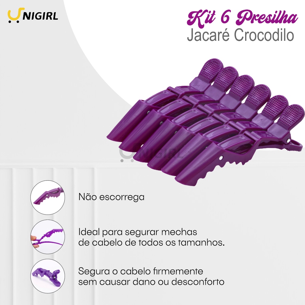 PRESILHA JACARÉ CROCODILO Quantidade : 6 Presilhas Presilha jacaré é um ótimo auxílio para o uso profissional e doméstico. - Não marca o cabelo - Não escorrega - Ideal para todos os tipos e tamanhos de cabelo Apresentamos o conjunto de 6 Unidades de Presilha Prendedor De Cabelo Clips Tipo Bico De Pato Jacaré Crocodilo com um design elegante estas presilhas são a escolha perfeita para profissionais cabeleireiros que buscam qualidade e durabilidade em seus acessórios de trabalho. Com um comprimento de 11,5 cm e largura de 1,5 cm, estas presilhas são ideais para segurar mechas de cabelo de todos os tamanhos, facilitando o trabalho de corte, coloração ou penteados. Feitas de plástico resistente, garantem um uso prolongado sem perder a eficácia. O modelo Jacaré é conhecido pela sua capacidade de segurar o cabelo firmemente, sem causar danos ou desconforto. Este conjunto de 6 unidades permite que você tenha sempre uma presilha à mão, seja no salão ou em casa. Invista em acessórios de qualidade para o seu trabalho. As presilhas são a escolha de profissionais que valorizam a eficiência e a durabilidade em seus instrumentos de trabalho. Garantia de qualidade e garantia de satisfação. Pronta entrega, envio imediato. Receba no conforto de sua casa. 💛Para mais produtos, entre em nossa loja. 💛Devido a diferenças de tela ou iluminação, a cor do produto pode ser ligeiramente diferente da imagem. E por favor permita leve erros dimensionais dimensionais de medição devido à medição manual. Estamos honrados para resolver problemas relacionados para você.