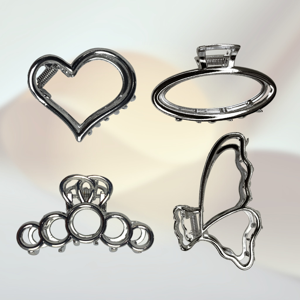 Presilha Prendedor de Cabelo Pequeno PRATA Abstrato de Metal Resistente Sortida