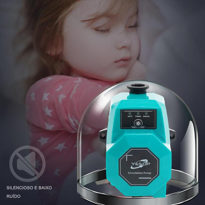 Mini Bomba Hidraúlica da YESOP é perfeita para uso em sistema solar, recirculação e pressurização em sistemas fechados. Indicado para uso direto em aquecedores de passagem, sistema solar e recirculação em sistemas fechados. Silenciosa; Sistema de fácil instalação; Resistente à utilização com água quente até 90ºC. Mini bomba com acionamento automático através do fluxo de água, onde no momento do consumo, mantém a rede pressurizada. É compacta, de fácil instalação, silenciosa e possui baixo consumo de energia elétrica. Além disso, conta com motor de proteção térmica, acionamento automático por fluxostato e capacitador permanente ideal para uso direto em aquecedores de passagem, sistema solar e recirculação em sistemas fechados. DIFERENCIAIS - Versátil: Ideal para recirculação de sistema solar - Robusto: Resistente à utilização com água quente até 90ºC INFORMAÇÕES TÉCNICAS - Tensão (V): 127/220 - Rotação: 5000 - Potência (W): 120 - Pressão máxima m.c.a.: 40 - Vazão máxima (l/min): 40 - Vazão mínima de trabalho (l/min): 2 - Conexões entrada/saída pol: 3/4" acompanha redutor para 1/2 - Dimensões produto (LxAxP) (mm): 160x145x145 - Peso Líquido (kg): 1.2 - Temperatura máx. de água trabalho (ºC): 90 - Temperatura máx. ambiente (ºC): 40