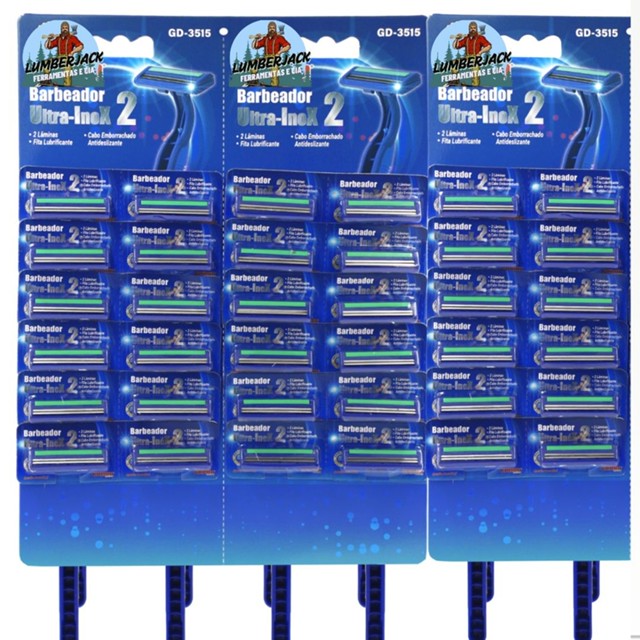 Prestobarba ou Barbeador Descartável Com 2 lâmina Com Fita Lubrificante Cartela 12, 24 E 36 Peças