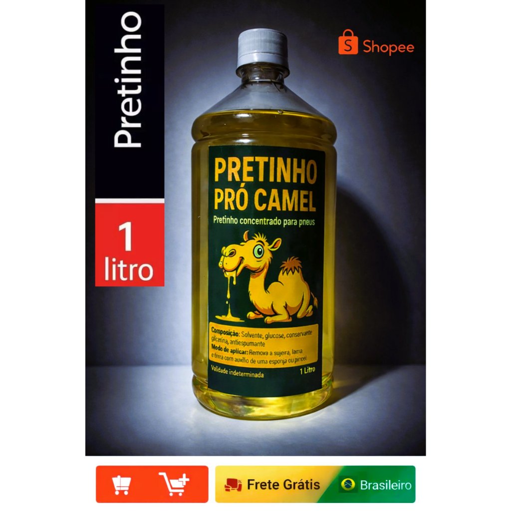 Pretinho Concentrado Baba de Camelo 1 LITRO integra a oferta da Shopee Brasil na subcategoria Abrilhantadores (de Acessórios para Veículos) por R$ 19,98 (7% de desconto sobre o preço original de R$ 21,48). Com avaliação de 4.8 de 5 estrelas e 159 unidades vendidas, este produto se destaca pelo excelente custo-benefício.