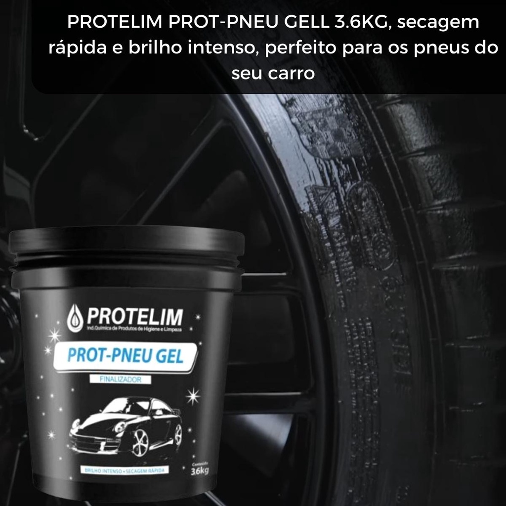 Pretinho para Pneu efeito Baba Brilho Intenso Longa Duração 3.6kg Rende Muito PROT PNEU GEL 3.6KG Protelim