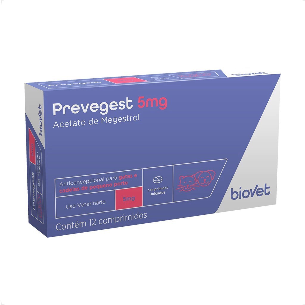 Prevegest 5mg Anticoncepcional Gatas e Cadelas - 12 Comprimidos Biovet