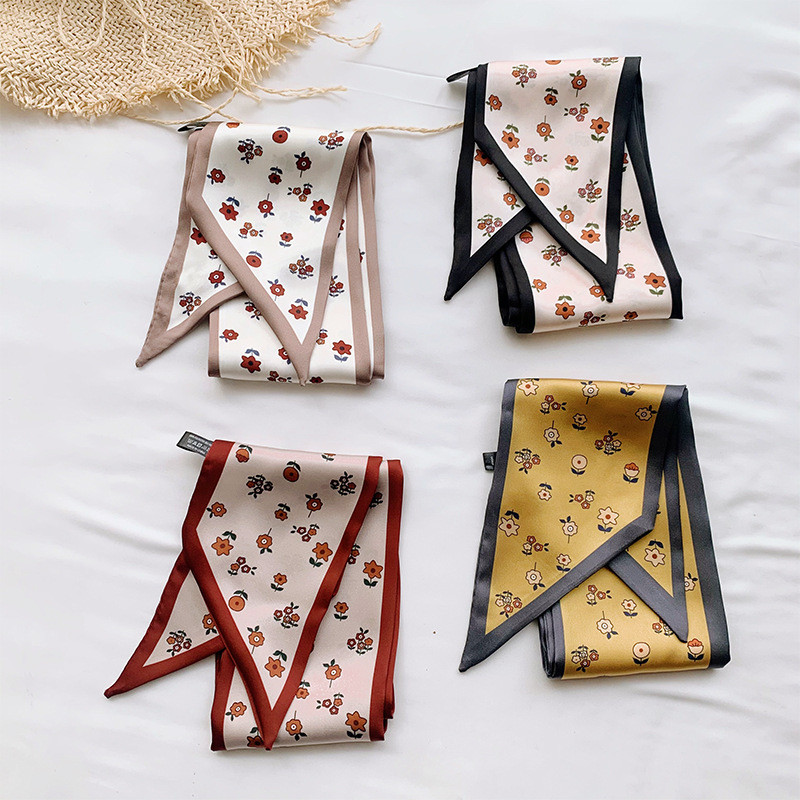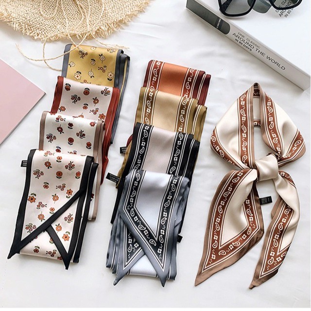 Primavera e verão novo lenço de seda de tiras longas para mulheres versáteis lenço de cabelo pequeno coreano com alça pa