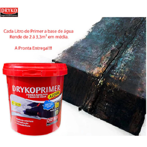Primer Asfáltico 1 Litro Base de Água Drycoprimer Acqua DRYKO INFORMAÇÕES GERAIS Pintura de imprimação à base de água composta de asfaltos que garante uma cobertura com única demão para o sistema impermeabilizante asfáltica. Onde aplicar: Imprimação para mantas asfálticas; Imprimação para fitas asfálticas; Imprimação para emulsão e solução asfáltica; Pintura impermeabilizante em baldrames e alicerces; Fundações e sapatas; Proteções de mourões e postes; Preparo da Superficie O substrato para aplicação do DRYKOPRIMER ACQUA deve ser limpo, isento de corpos estranhos, restos de fôrmas, pontas de ferragem, restos de produtos desmoldantes ou impregnantes, falhas e ninhos. Em concretos lisos realizar lixamento com escova de aço ou mecanicamente para abertura de porosidade e remoção de desmoldantes ou agente de cura. Onde necessário executar regularização com caimento mínimo de 1% em direção aos pontos de escoamento de água para áreas externas e 0,5 % para áreas internas, preparada com argamassa de cimento e areia média traço 1:4, adicionando-se emulsão adesiva DRYKOFIX na água de amassamento para maior aderência no substrato. A argamassa deverá ter acabamento desempenado, com espessura mínima de 2 cm. Tubulações emergentes e ralos deverão estar rigidamente fixados. Arredondar cantos vivos e arestas. Trincas e fissuras devem ser tratadas antes da aplicação da impermeabilização. Aplicação Imprimação Com o substrato seco aplique em única demão do DRYKOPRIMER ACQUA puro e aguarde a secagem de 6 a 8 horas para aplicação do sistema de impermeabilização ou vedação asfáltico. Pintura impermeabilizante Com o substrato seco aplique a 1o demão do DRYKOPRIMER ACQUA e aguarde a secagem de 6 a 8 horas para aplicação das demãos seguintes até atingir o consumo recomendado ou desejado. Recomenda-se não aplicar o produto em tempo chuvoso e substrato molhado. Recomendamos a aplicação com temperatura entre 10 e 40 °C, e umidade relativa do ar inferior a 85%. Validade e Armazenamento Válido por 24 meses a partir da data de fabricação desde que respeitadas às normas de armazenamento. Guardar em local coberto, seco, ventilado e longe de fontes de calor, em ambientes com temperatura não superiores a 30°C e na posição vertical.