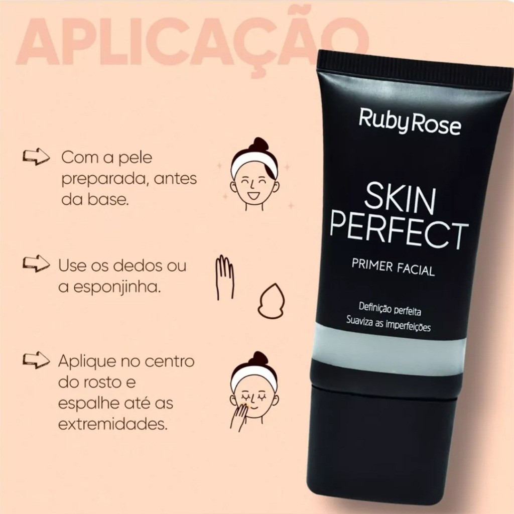 Primer Facial SKIN Perfect Ruby Rose HB-8086 Indicado para utilização antes da maquiagem, para todo tipo de pele, ajuda na fixação além de hidratar a pele e disfarça poros abertos. Toque aveludado para acabamento de sua maquiagem ficar ainda mais glamourosa. - Primer SKIN Perfect - Photo-Loving Primer - Definição Perfeita.