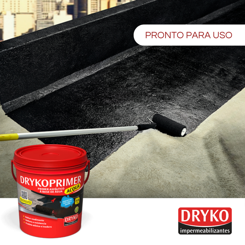 Primer Asfáltico Drykoprimer Acqua Pintura de imprimação à base de água composta de asfaltos que garante uma cobertura com única demão para o sistema impermeabilizante asfáltica. Onde aplicar: - Imprimação para mantas asfálticas; - Imprimação para fitas asfálticas; - Imprimação para emulsão e solução asfáltica; - Pintura impermeabilizante em baldrames e alicerces; - Fundações e sapatas; - Proteções de mourões e postes. Preparo da Superfície O substrato para aplicação do DRYKO PRIMER ACQUA deve ser limpo, isento de corpos estranhos, restos de fôrmas, pontas de ferragem, restos de produtos desmoldantes ou impregnantes, falhas e ninhos. Em concretos lisos realizar lixamento com escova de aço ou mecanicamente para abertura de porosidade e remoção de desmoldantes ou agente de cura. Onde necessário executar regularização com caimento mínimo de 1% em direção aos pontos de escoamento de água para áreas externas e 0,5 % para áreas internas, preparada com argamassa de cimento e areia média traço 1:4, adicionando-se emulsão adesiva DRYKOFIX na água de amassamento para maior aderência no substrato. A argamassa deverá ter acabamento desempenado, com espessura mínima de 2 cm. Tubulações emergentes e ralos deverão estar rigidamente fixados. Arredondar cantos vivos e arestas. Trincas e fissuras devem ser tratadas antes da aplicação da impermeabilização. Aplicação: Imprimação: Com o substrato seco aplique em única demão do DRYKO PRIMER ACQUA puro e aguarde a secagem de 6 a 8 horas para aplicação do sistema de impermeabilização ou vedação asfáltico. Pintura impermeabilizante: Com o substrato seco aplique a 1o demão do DRYKO PRIMER ACQUA e aguarde a secagem de 6 a 8 horas para aplicação das demãos seguintes até atingir o consumo recomendado ou desejado. Recomenda-se não aplicar o produto em tempo chuvoso e substrato molhado. Recomendamos a aplicação com temperatura entre 10 e 40 C, e umidade relativa do ar inferior a 85%. Validade e Armazenamento: Válido por 24 meses a partir da data de fabricação desde que respeitadas às normas de armazenamento. Guardar em local coberto, seco, ventilado e longe de fontes de calor, em ambientes com temperatura não superiores a 30C e na posição vertical. Manuseio e Segurança: - Manuseie com cuidado. - Recomendamos observar as normas de segurança estabelecidas pelos órgãos competentes e o uso de EPIs adequados. - Em caso de ingestão acidental, não forçar vômito. Em contato com os olhos, lavar bem com água durante 15 minutos no mínimo. Em contato com a pele, lavar bem com água e sabão e utilizar creme hidratante. Procurar um médico. - Manter fora do alcance de crianças e animais. - Em locais fechados, caso necessário criar ventilação forçada. - Descarte o conteúdo / recipiente em uma estação aprovada de tratamento de resíduos. Faça da sua casa o lugar dos seus sonhos com os produtos do E-Fast Bazar. Estamos aqui para ajudar você a construir, decorar e transformar cada espaço com praticidade e qualidade. Acesse agora e descubra tudo o que precisa para deixar sua vida mais confortável e seu lar ainda mais acolhedor. Não espere mais, comece hoje mesmo a transformação! Att, Equipe E-fast