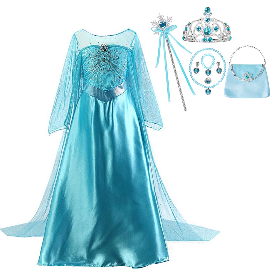 Princesa Elsa Vestido Para Meninas De Festa De Carnaval Cosplay Manga Longa Camisa De Neve Congelada Rainha Vestidos