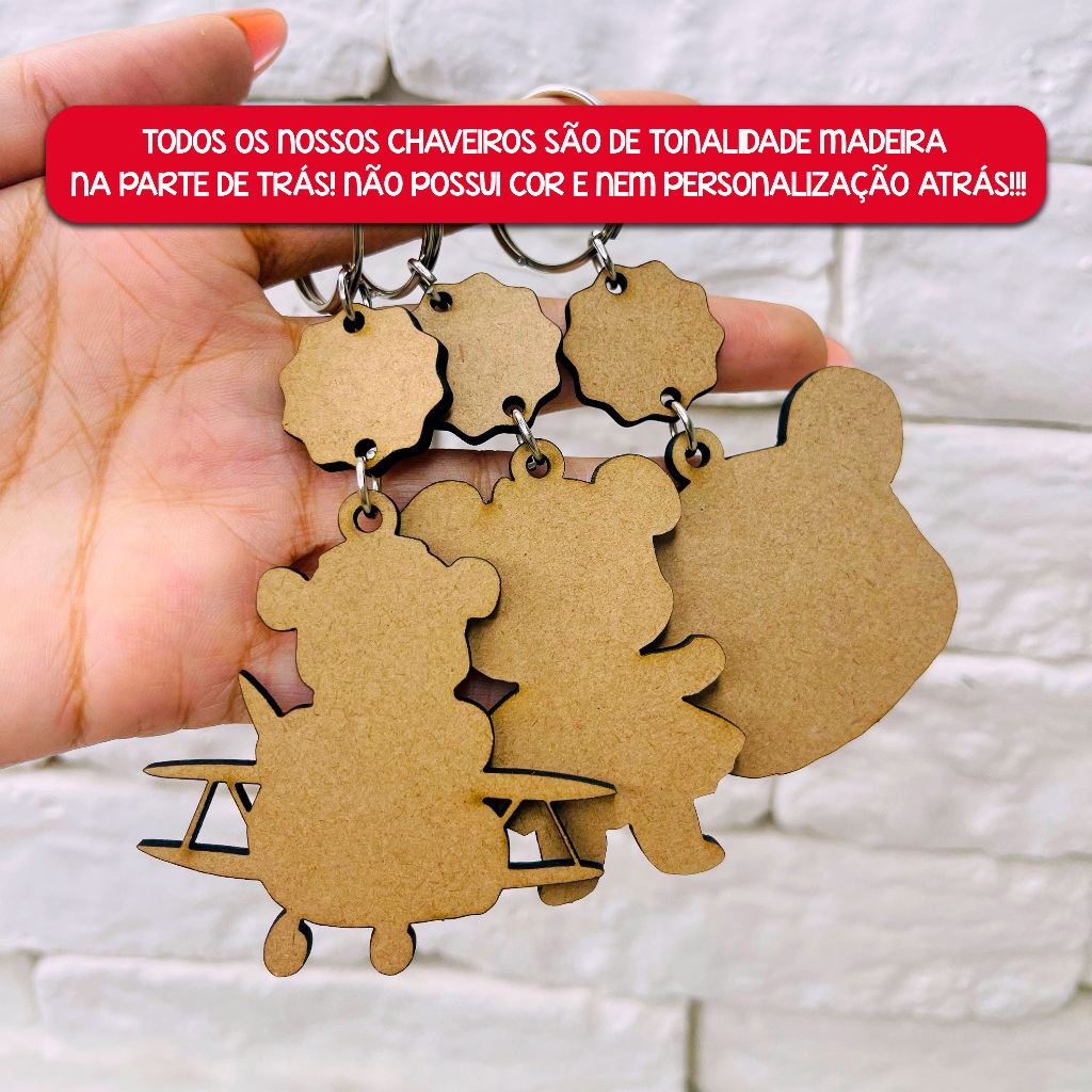 Chaveiro Personalizado em MDF Brilhoso! Para o seu evento ficar completo com essa lembrancinha super prática, linda, leve e de ÓTIMA QUALIDADE. ✅ TAMANHO: Varia de 5 a 6cm NO MAIOR LADO. (Sempre vai depender do desenho) ✅ ESPESSURA DA MADEIRA: 3 mm ✅ PRAZO: Até 10 dias úteis ✅ O corte é feito a laser deixando um acabamento perfeito, imagem em ALTA RESOLUÇÃO e NÃO É ADESIVADO ✅ O Chaveiro vai completinho, todo montado para uso!! (NÃO ACOMPANHA EMBALAGEM UNITÁRIA, VÃO TODOS EMBALADOS JUNTOS) ✅ Tag personalizável com a escrita que desejar, como no anúncio! <3 🛑 NÃO FAZEMOS UMA ESCRITA/NOME DIFERENTE EM CADA CHAVEIRO!!! A escrita precisa ser a mesma em todos os chaveiros. 🛑 NÃO FAZEMOS NENHUM TIPO DE ALTERAÇÃO NA IMAGEM DOS CHAVEIROS, VAMOS FAZER IDÊNTICO AO QUE ESTÁ NA FOTO DO ANÚNCIO! ÚNICA PARTE PERSONALIZÁVEL É A ESCRITA DA TAG! 🛑 Os chaveiros não possuem personalização NO VERSO, a parte de trás do chaveiro é toda na cor madeira. 🛑 Não adiantamos pedidos, nosso prazo são 10 dias úteis para produção, se não estiver de acordo, não efetue a compra! Se a festa estiver em cima, NÃO EFETUE A COMPRA. 🛑 Enviar a escrita que deseja na tag ➡️ IMEDIATAMENTE APÓS A COMPRA ⬅️ SE A ESCRITA NÃO FOR ENVIADA ATÉ 24 HORAS APÓS A TAG IRÁ ESCRITA COM A SEGUINTE FRASE: OBRIGADO PELA PRESENÇA! 🛑 OBS: NÃO ENVIAMOS ARTE DE APROVAÇÃO devido a nossa demanda, A ARTE SERÁ IDÊNTICA A QUE ESTÁ NO ANÚNCIO, vamos apenas alterar para a escrita que desejar!!! Brindes ideais para qualquer tipo de evento: Festas infantis, lembrança maternidade, chá de fralda , chá de bebê, etc!