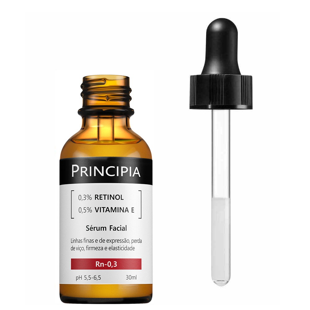 Principia Kit Duplo Retinol Antissinais Avançado Sérum com 0,3% de Retinol e 0,5% de Vitamina E com alta eficácia na melhora de rugas, linhas finas, firmeza e viço. Benefícios: Principais Aumentar a firmeza e elasticidade Melhorar o viço Suavizar rugas e linhas finas Clarear manchas escuras Proporcionar maciez Reduzir e uniformizar a pigmentação Reduzir tamanho dos poros Tipos de pele Seca Oleosa Mista Normal MODO DE USO: » Use diariamente, apenas à noite » Aplique no rosto limpo e seco, antes de cremes, protetor solar e maquiagem » Sem encostar a cânula da pele, dispense algumas gotas nos dedos ou diretamente na face » Espalhe suavemente pelo rosto, exceto na área dos olhos » Não aplique sobre a pele irritada ou lesada » Evite contato com os olhos e exposição solar sem proteção » Mantenha fora do alcance de crianças » Guarde em local fresco e seco » Para o uso durante a gravidez, consulte um médico » Durante a primeira semana de uso, aplique pequenas quantidades de produto, em dias alternados » Havendo irritação, suspenda o uso e procure por orientação médica Dúvidas frequentes INGREDIENTES ATIVOS RETINOL Obtido da vitamina A, suas moléculas conseguem penetrar na derme, onde ajudam a neutralizar radicais livres e estimulam a síntese de elastina e colágeno, proporcionando melhora de linhas de expressão, firmeza, elasticidade e viço, além de promover a esfoliação química da pele, suavizando e uniformizando sua textura e pigmentação. VITAMINA E Encontrada naturalmente em alimentos como castanhas, espinafre e azeite de oliva, tem potente ação antioxidante, auxiliando na neutralização de radicais livres, além de comprovada propriedade fotoprotetora, reduzindo efeitos nocivos da radiação solar na pele. DÚVIDAS FREQUENTES Contém parabenos, petrolatos e sulfatos? Não. Sua composição também não inclui silicones, fragrância, corantes nem glúten. Está regularizada na Anvisa? Sim, conforme o processo número 25351.003143-2022-38. Foi testada em animais? Não. A PRINCIPIA não realiza testes em animais. Qual o prazo de validade? Dois anos, contados da data de fabricação. Pode ser usada junto com outras fórmulas? Sim, praticamente não há restrições para uso com outros ativos. Causa acnes ou cravos? Não. Pelo contrário, costuma ter efeito benéfico e ser recomendada para peles acnêicas. Garantia de fábrica: 30 dias