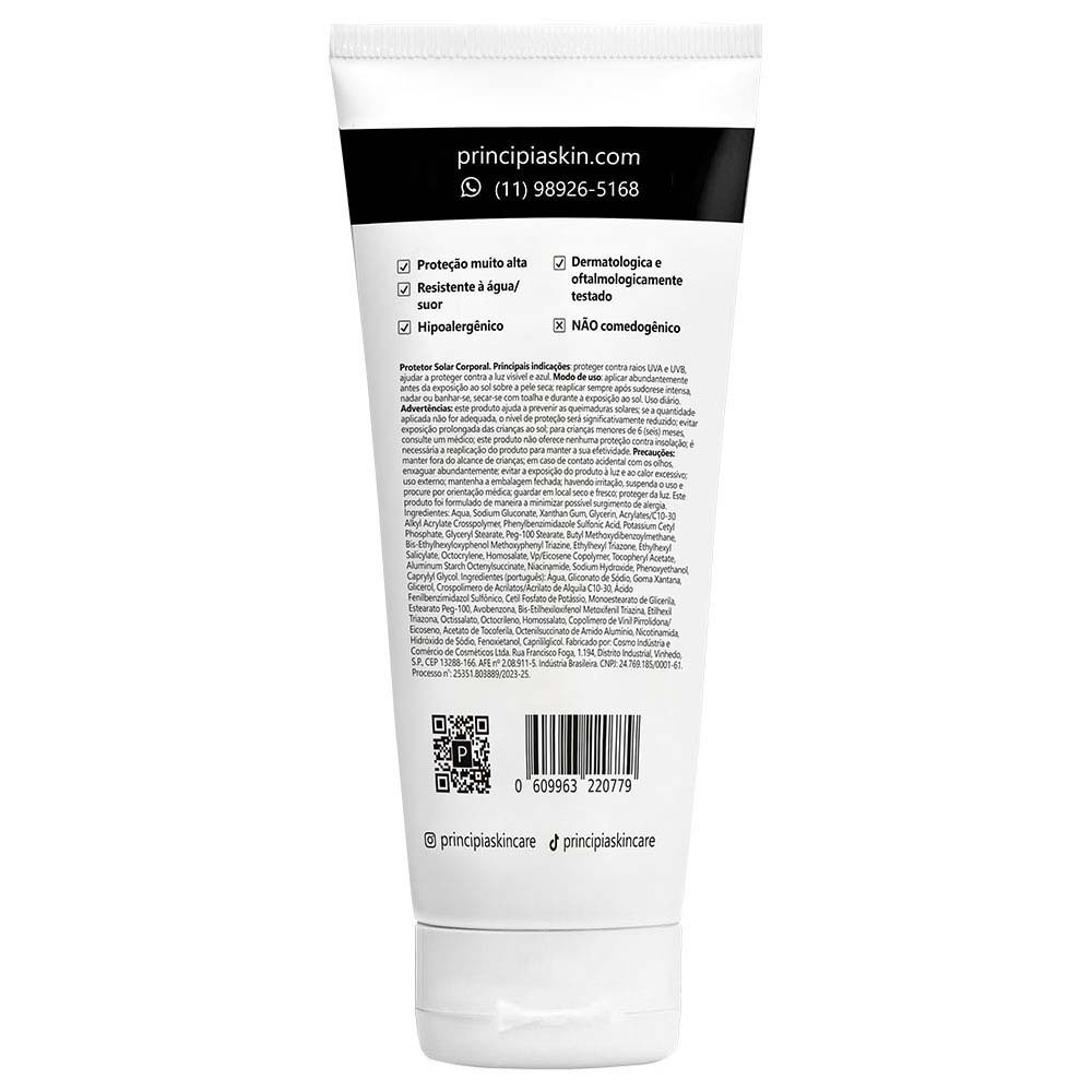 Kit com protetor solar fluido antioleosidade com 16,5% de filtros UV e 5% de niacinamida, FPS 60, toque seco e eficácia contra raios UVA e UVB mais o protetor solar corporal fluido antioleosidade com 29% de filtros UV e 2% de niacinamida, FPS 60, toque seco e eficácia contra raios UVA e UVB. INDICAÇÕES Principais Proteger contra o sol Auxiliar na proteção contra a luz visível e luz azul Controlar a oleosidade Reduzir e uniformizar a pigmentação Promover hidratação Tipos de pele Todos INGREDIENTES ATIVOS NIACINAMIDA Forma estável de vitamina B3 capaz de entregar diversos benefícios para a pele, tais como redução de acnes e cravos e controle da oleosidade, comprovados em estudos publicados em diversos médico-científicos. É um precursora dos cofatores NADH (nicotinamida e adenina dinucleotídeo) e NADPH (fosfato de nicotinamida e adenina dinucleotídeo), que em suas formas reduzidas agem como coenzimas em dezenas de reações bioquímicas. FILTROS UV Ingredientes que absorvem ou refletem raios UVA e UVB protegendo a pele contra danos causados pela exposição ao sol tais como aparecimento de manchas, queimaduras solares, envelhecimento prematuro e câncer de pele. MODO DE USO » Use diariamente antes da exposição ao sol » Aplique abundantemente sobre a pele seca » Reaplique sempre após sudorese intensa, nadar ou banhar-se, secar-se com toalha e durante a exposição ao sol » Mantenha fora do alcance de crianças » Em caso de contato acidental com os olhos, enxaguar abundantemente » Havendo irritação, suspenda o uso e procure por orientação médica DÚVIDAS FREQUENTES Contém parabenos, petrolatos ou silicones? Não. Sua composição também não inclui corantes, fragrância nem glúten. Está regularizada na Anvisa? Sim, conforme o processo número 25351.803889/2023-25. Causa descamação da pele? Em geral, não provoca descamação visível da pele. Foi testada em animais? Não. A PRINCIPIA não realiza testes em animais. Qual o prazo de validade? Três anos, contados da data de fabricação. Pode ser usada junto com outras fórmulas? Sim. Praticamente não há restrições para uso conjunto com outros ativos. Causa acnes ou cravos? Não. Pelo contrário, costuma ter efeito benéfico e ser recomendada para peles acnêicas.