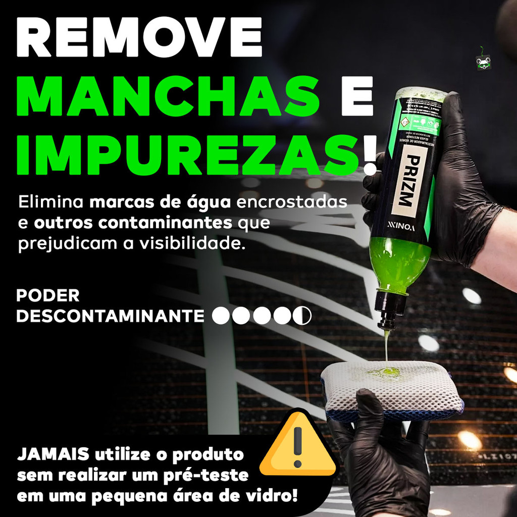 Bem-vindo a Koala Parts! A sua escolha certa para peças e acessórios automotivos - Há mais de 10 anos oferecendo qualidade e confiança. Prizm Restaurador de Vidros Chuva Ácida 500ml Vonixx • TOTAL PROTEÇÃO E TRANSPARÊNCIA • REMOÇÃO DE IMPUREZAS • FÁCIL APLICAÇÃO RESTAURA A TRANSPARÊNCIA Devolva a clareza original dos vidros do seu veículo para uma visão mais nítida e segura. REMOVE MANCHAS E IMPUREZAS Elimina marcas de água encrostadas e outros contaminantes que prejudicam a visibilidade. FÁCIL APLICAÇÃO Aplicação simples e rápida sem necessidade de diluição do produto. USO RECOMENDADO Vidros automotivos *NÃO Utilizar o produto em espelhos automotivos. **JAMAIS utilize o produto sem realizar um pré-teste em uma pequena área do vídeo. APLICAÇÃO Faça um pré-teste em uma pequena área para verificar o resultado. Aplique uma pequena quantidade produto com uma esponja ou toalha de microfibra, esfregando o vidro com pressão moderada em área não superior a 60x60cm por pelo menos 40 segundos. Enxágue com água em abundância. > Onde mais usar? O Prism também pode ser usado na restauração de escapamentos e emblema da marca do veículo, mangueira de descarga da moto, correia e detalhes cromados. >>ATENÇÃO<< Produto altamente corrosivo, utilize apenas com uso de EPIs. ESPECIFICAÇÕES TÉCNICAS: - Disponível em: 500ml - Estado Físico: Líquido viscoso - Cor do produto: Verde - Solubilidade em Água: Solúvel - pH do produto: 1,0 (solução a 1%) CONTEÚDO DA EMBALAGEM - 01 Restaurador de Vidros Removedor de Manchas Prizm 500ml Vonixx