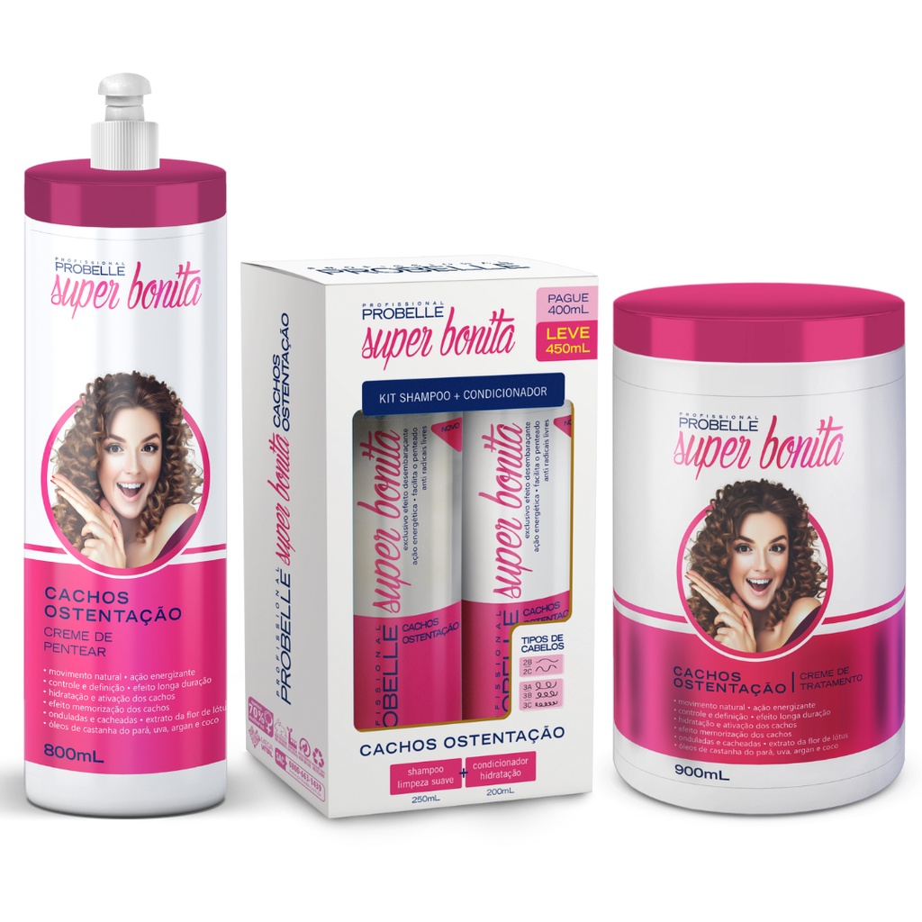 Probelle - Kit Super Poderosa - Shampoo + Condicionador + Hidratação + Pentear.