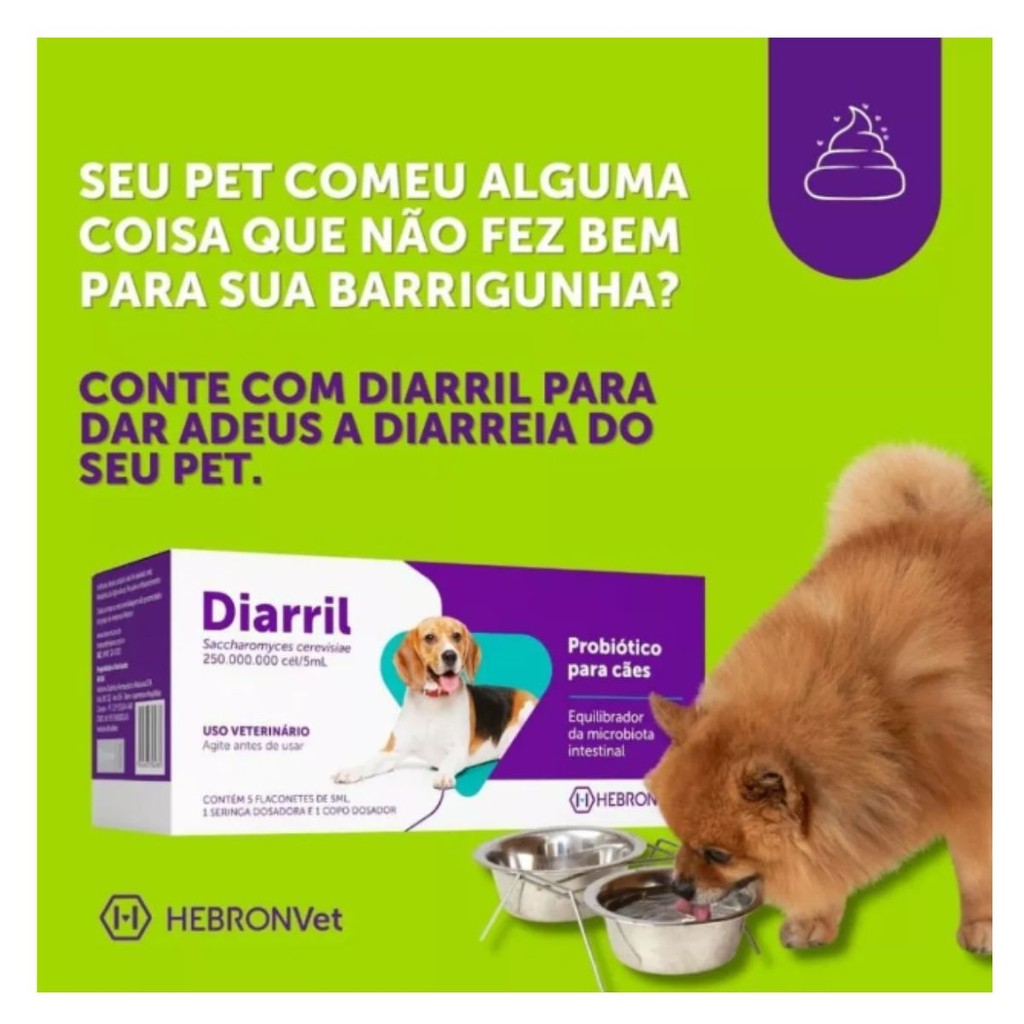 A MANADA ANIMAL é um marketplace de produtos veterinários. É a escolha certa para tutores que prezam pela qualidade dos produtos que seu animal necessita. Tudo com o suporte de uma equipe de veterinários e gestores com mais de 10 anos de experiência no mercado. Fique tranquilo, todos os nossos produtos são originais, adquiridos através de distribuidores credenciados! Ah, e todas as vendas acompanham nota fiscal! MANADA ANIMAL, Tranquilidade pra você, cuidado para ele! ______________________________________ Diarril – probiótico para cães Diarril é um probiótico à base de Saccharomyces cerevisiae, que previne a colonização do intestino por coliformes patogénicos, altera a taxa de absorção gastrointestinal e inibe o crescimento bacteriano, além de influenciar o equilíbrio das bactérias do intestino dos cães. Indicação: Antidiarreico, repositor e equilibrador da microbiota intestinal, indicado para o tratamento de diarreia causada em cães por Salmonella typhimurium. Posologia e Modo de usar: Diarril deve ser usado por via oral na dose de 1 flaconete de 5mL ao dia, dividido em duas porções diárias de 2,5ml a cada 12 horas, durante 10 dias consecutivos ou segundo orientação do médico veterinário. As porções devem ser medidas com a seringa dosadora.