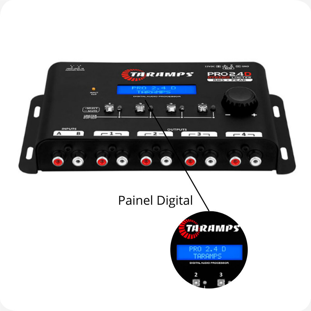Processador De Áudio Digital Taramps PRO 2.4D 2 Entradas 4 Saídas Equalizador Crossover