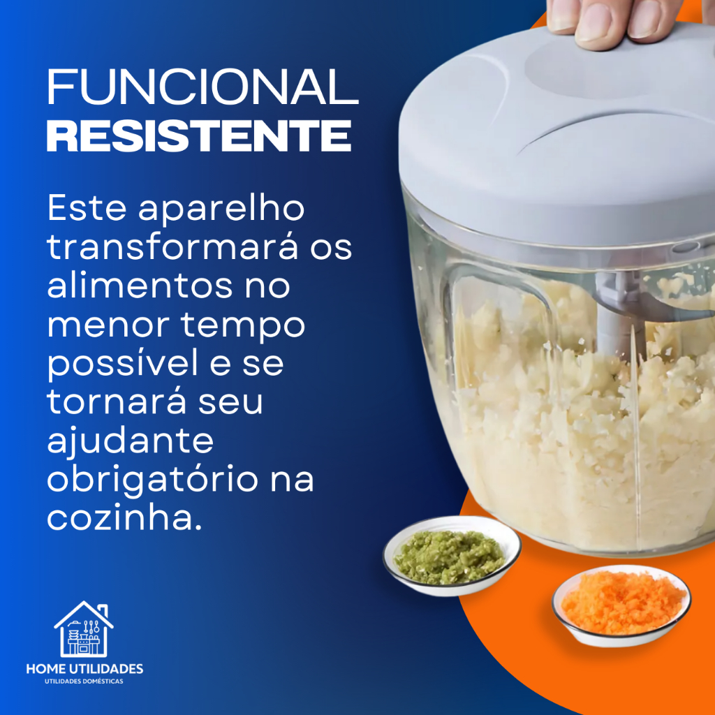 ⭐ Processador Manual de Alimentos 900ml com Cordão e Lâminas em Aço Inox – Praticidade e Controle no Preparo das Refeições ⭐ O Processador Manual de Alimentos 900ml é a solução ideal para quem busca agilidade, praticidade e eficiência no preparo diário das refeições. Compacto, funcional e fácil de usar, ele permite picar, triturar e misturar diversos tipos de alimentos de forma rápida, sem necessidade de energia elétrica, tornando-se um item indispensável na cozinha. 🧅 Facilite o Preparo dos Alimentos. Com capacidade de 900 ml, o processador é ideal para preparar porções variadas, atendendo desde pequenas quantidades até receitas do dia a dia. Indicado para picar cebola, alho, temperos, legumes, frutas, ervas e outros ingredientes, ele otimiza o tempo na cozinha e reduz o esforço manual. 🔄 Sistema Manual com Cordão – Controle Total. O funcionamento é simples e eficiente: basta puxar a corda para acionar o sistema interno de lâminas. Quanto mais vezes o cordão é acionado, maior é o nível de trituração, oferecendo controle total sobre o corte, com efeito semelhante à função “pulsar” dos processadores elétricos. 🔪 Lâminas em Aço Inoxidável de Alta Resistência. Equipado com 5 lâminas em aço inox, o processador garante cortes rápidos, precisos e eficientes. O material oferece maior durabilidade, resistência à corrosão e excelente desempenho no processamento de diferentes tipos de alimentos. 🔒 Trava de Segurança Integrada. O produto conta com trava de segurança, proporcionando mais estabilidade durante o uso e evitando acionamentos indevidos. Essa característica garante mais tranquilidade e segurança para o uso diário. 👐 Uso Manual – Sem Energia Elétrica. Por ser totalmente manual, o processador dispensa o uso de eletricidade ou baterias. Ideal para quem busca economia de energia, praticidade, mobilidade e também para uso em locais sem acesso à tomada. 🚿 Fácil Limpeza e Manutenção. O design desmontável facilita a higienização após o uso. Além disso, o processador é compatível com lava-louças, tornando a limpeza ainda mais rápida e prática. 🍳 Benefícios no Uso Diário. • Agiliza o preparo de legumes, frutas e temperos. • Proporciona maior controle no corte. • Reduz o tempo de preparo das receitas. • Fácil de montar, desmontar e limpar. • Ideal para cozinhas pequenas e rotinas práticas. 🧂 Indicado Para: • Preparo de temperos. • Trituração de legumes. • Corte de frutas. • Apoio em receitas rápidas do dia a dia. 📦 Conteúdo da Embalagem: • 01 Processador Manual de Alimentos. • Capacidade: 900 ml. • Sistema manual com cordão. • Conjunto de 5 lâminas em aço inox. O Processador Manual 900ml é a escolha certa para quem deseja mais praticidade, controle e eficiência no preparo dos alimentos, com um produto compacto, funcional e fácil de usar.