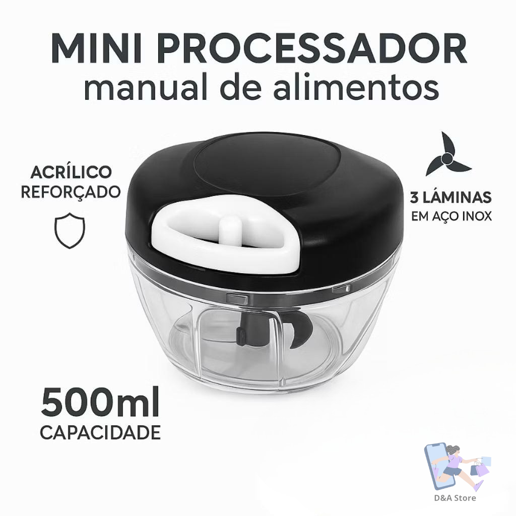Processador Triturador Manual de Alimentos Alho Legumes Frutas 500ml 3 Lâminas Portátil