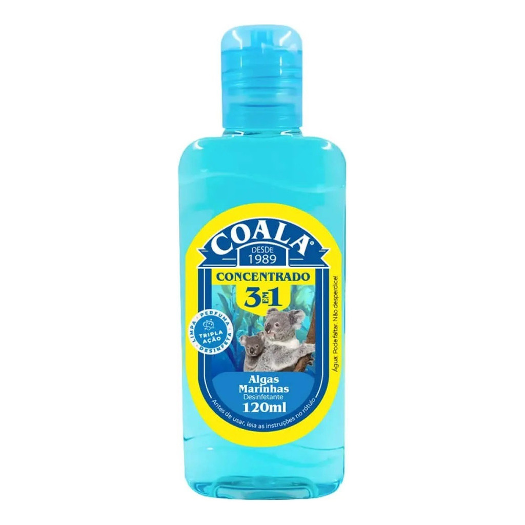 Descrição A hora da limpeza fica ainda mais perfumada com o Coala Desinfetante Concentrado 3 em 1. Além de perfumar, ele elimina até 99,9% dos germes e bactérias. Tudo isso com muita economia, já que possui fórmula concentrada. Limpa, desinfeta e perfuma: tudo com um ótimo rendimento! O Desinfetante Concentrado Coala pode ser utilizado em qualquer tipo de ambiente, seja ele residencial ou comercial, interno ou externo. Seu uso é muito eficaz com ação bactericida, limpa e perfuma, além de deixar os ambientes super perfumados. Modo de usar Para odorização e limpeza dilua 10 gotas do Coala Desinfetante Concentrado para cada litro de água. Para desinfecção de superfícies, dilua 5 ml do produto para cada litro de água. Para um melhor resultado aplique diretamente na superfície e deixe agir por 10 minutos. Retire com pano úmido. Indicações Produto concentrado, de alto rendimento e qualidade superior, já que elimina 99,9% dos germes e bactérias. Produto concentrado de alto rendimento. Com ação bactericida que limpa e perfuma. O uso é muito eficaz para perfumar ambientes. Para qualquer tipo de ambiente Precauções: Manter o produto em um ambiente que não recebe luz solar direta, pois o calor excessivo pode danificar o produto e sua eficácia. Além disso, é importante guardar em um local fora do alcance de crianças e de animais de estimação. Usar luvas, avental e óculos de proteção para aplicação do produto Perguntas frequentes O que significa "concentrado"? O termo "concentrado" significa que antes de usar esse Desinfetante ele deve ser diluído em água. Com isso, você tem economia, pois o produto rende e dura mais, com o mesmo efeito que uma fórmula tradicional teria. Quais cuidados devo ter? Manter o produto em um ambiente que não recebe luz solar direta, pois o calor excessivo pode danificar o produto e sua eficácia. Além disso, é importante guardar em um local fora do alcance de crianças e de animais de estimação. Usar luvas, avental e óculos de proteção para aplicação do produto. Ficha Técnica Nome do Produto: Coala Desinfetante Concentrado 3 em 1 120 ml Volume: 120 Militros Marca: Coala do Brasil Ltda Número de unidades: 1