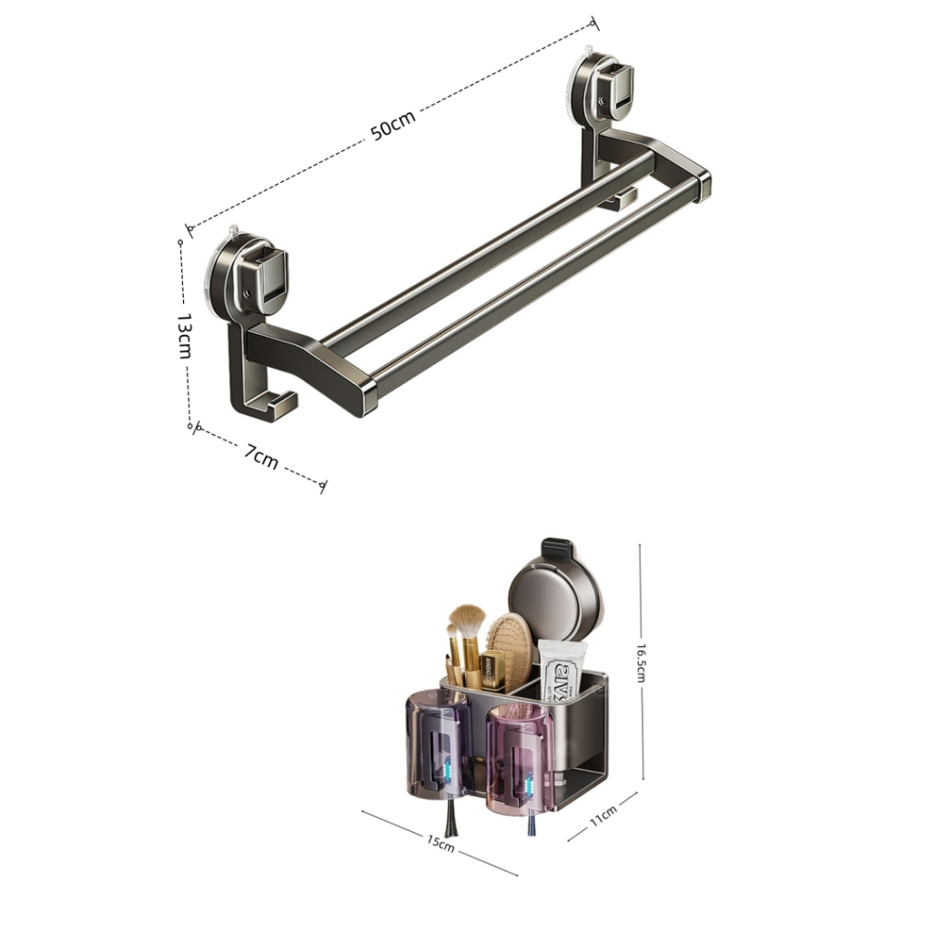 Suporte de toalha com ventosa banheiro prateleira de armazenamento com suporte para escova de dentes Yesop Nome: suporte para escova de dentes Material: liga de alumínio/ABS Cor: preto Instalação: Instalação Design elegante e alta qualidade Para comercial, doméstico, bar etc.Use O design de montagem em parede aproveita ao máximo espaços pequenos. Tamanho: Toalheiro: 50 x 13 x 7 cm Porta-escovas de dentes: 16 x 15 x 7 cm O pacote inclui: 1 porta-escovas de dentes (inclui 2 xícaras) 1 porta-toalhas Características: 1. instalação sem perfurações: sem necessidade de perfuração ou parafusos, facilitando a instalação e remoção sem danificar as paredes. 2.Design que economiza espaço: O rack de armazenamento montado na parede economiza espaço valioso no balcão do banheiro. 3. porta-copos de enxaguatório bucal conveniente: o suporte para escova de dentes funciona como um suporte para copos de enxaguatório bucal, facilitando o enxágue após escovar os dentes. Nota: Por favor, permita erros de 1-2 cm (0,39-0,79 pol.) devido à medição manual. Certifique-se de que não se importa antes de fazer o pedido. Devido à diferença entre monitores diferentes, a imagem pode não refletir a cor real do item.