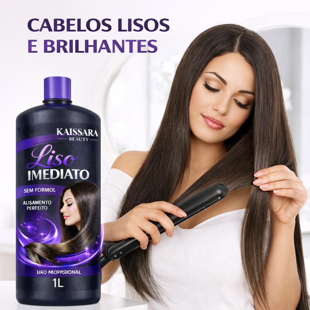 Liso Imediato Kaissara Beauty é um alisamento profissional desenvolvido para promover fios mais lisos, alinhados e com brilho intenso desde a primeira aplicação. Sua fórmula ajuda a reduzir o frizz, controlar o volume e proporcionar efeito duradouro, deixando o cabelo com acabamento de salão. Indicado para uso profissional, o produto oferece alto rendimento em embalagem de 1 litro, sendo ideal para quem busca performance, praticidade e resultados visíveis. Benefícios: • Alisamento eficaz desde a primeira aplicação • Redução significativa do frizz • Controle de volume e alinhamento dos fios • Brilho intenso e aspecto saudável • Maciez e melhor maleabilidade • Efeito liso duradouro • Fórmula sem formol • Resultado profissional de salão Modo de uso: Lave os cabelos com shampoo antirresíduos e enxágue bem. Seque os fios de 80% a 100% com o secador. Divida o cabelo em mechas e aplique o Liso Imediato Kaissara Beauty, respeitando a distância do couro cabeludo. Deixe agir conforme o tempo de pausa indicado para o tipo de cabelo. Enxague e seque completamente com o secador. Pranche em mechas finas para selar o produto. Finalize como desejar. Importante: Produto de uso profissional. Realize teste de mecha antes da aplicação.