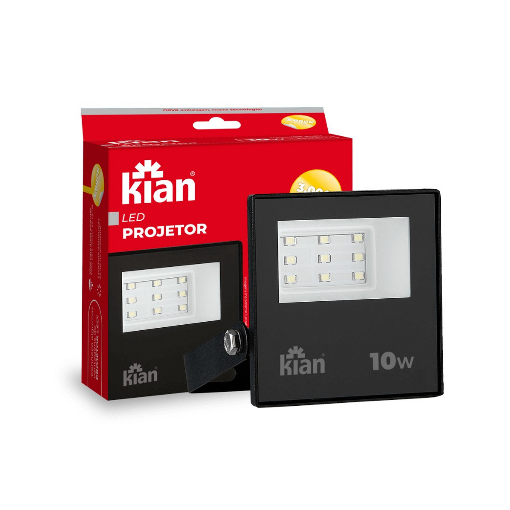 Projetor Holofote Led 10W 3,0000K Preto Kian