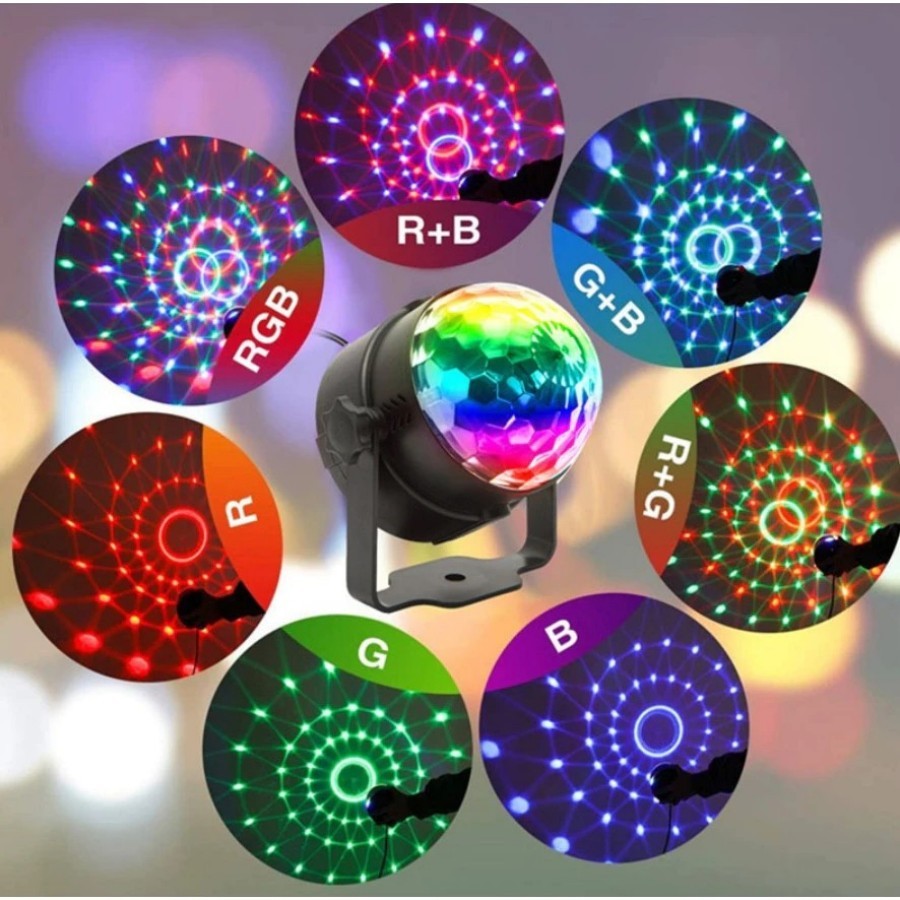 Multi FUNÇÃO DISCO LIGHTS: 3 modos ativados por som + modos de iluminacao + flash + controle de velocidade de rotacao + controle de velocidade flash. 7 Modos de iluminacao luzes de festa: vermelho, verde, azul, vermelho/verde, vermelho/azul, verde/azul e RGB. Basta escolher o que voce gosta. Ativadas por Som ou Batidas: poderoso sensor ativado por voz. Perfeito para festa de aniversario, festa de danca, Dj, barra, karaoke, natal, casamento, mostra, clube, pub, natal, halloween etc. Ativados por Controle Remoto: vem com um controle remoto, voce pode usa-lo para ligar/desligar as luzes, mudar modos de som ativado/iluminacao e controlar a velocidade de rotacao/flash. Todas as funcoes no controle remoto, muito facil de usar. Facil de usar luzes de festa: basta liga-lo e jogar. Com suporte flexivel, a luz do estagio pode ser colocada diretamente na mesa, no carro, ou pode ser fixada na parede e no telhado. Informacoes Tecnicas: . Material: plastico transparente alto (abajur) plastico de alta resistencia (parte base) . Tensao de alimentacao: 110v/220v (bivolt automatico) . Potencia total: 3 LEDs x 1W (3W) . Modo de funcao: Por Voz (som ou batida) e Por Controle Remoto . Vida util: 20000h . Tamanho aproximado: 10cm x 11cm x 11cm Conteudo da Embalagem: . 01 Multi luzes de discoteca . 01 Controle Remoto