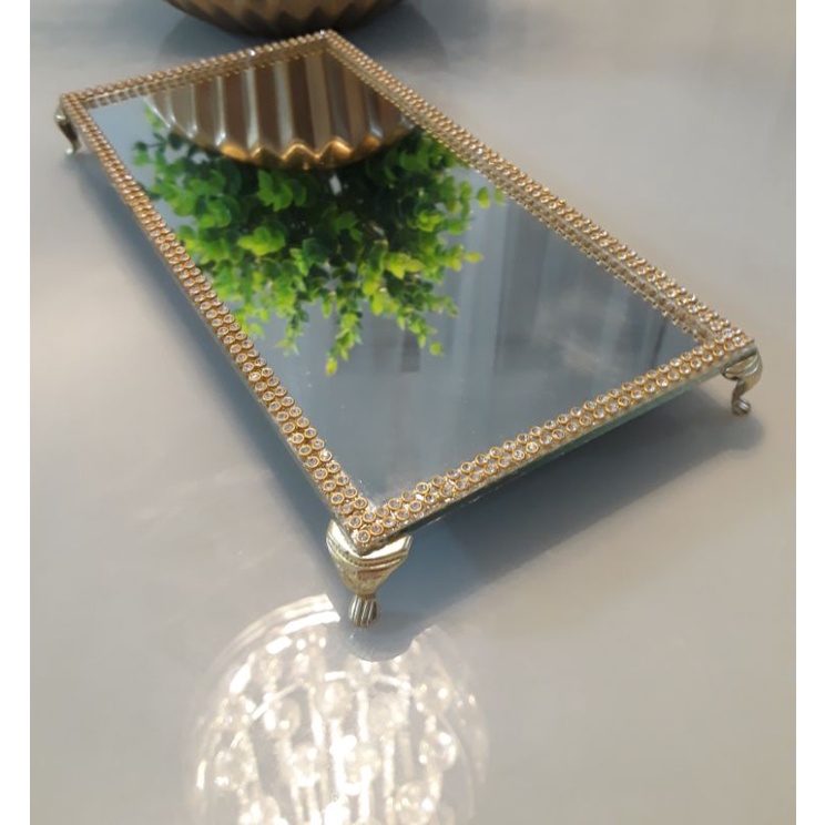 PROMOÇÃO Bandeja Espelhada Egípcia Luxo Alto Brilho Strass Original Decorativa Sala Lavabo Banheiro