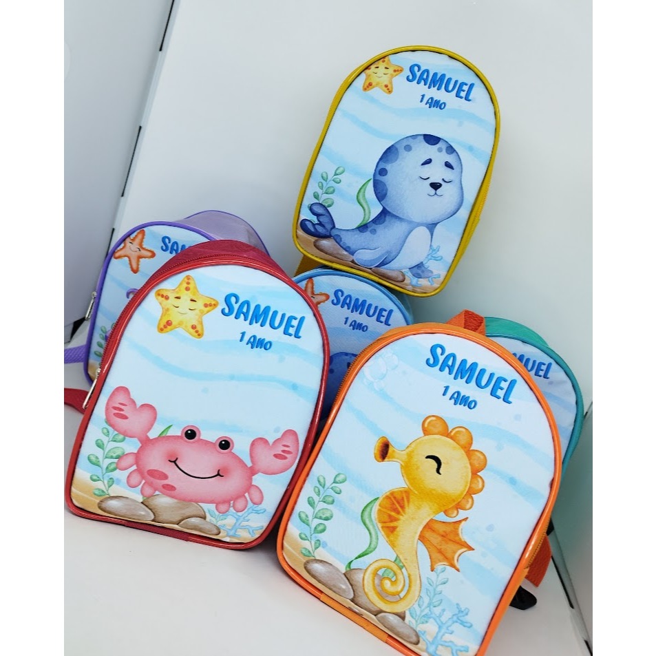 Promoção! Kit com 10 Mochilinhas Personalizadas Fundo do Mar, bolsinhas para festa Infantil, festa fundo do mar.