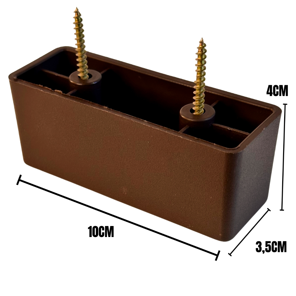 KIT PÉS RETANGULAR DE APOIO PARA SOFÁ, CAMA BOX, PUFF, ARMÁRIOS E MÓVEIS EM GERAL *** Ideal para sofá de até 3 módulos 8 pés (4 canto 4 meio) *** Ideal para sofá de até 2 módulos 6 pés (4 canto 2 meio) - Quer lavar o chão da sua residência e possui medo de estragar os pés de seus móveis? Com os pés da DHPLAST seus problemas possuem solução, eles são produzidos com plástico polipropileno com alta resistência e qualidade! Com eles você pode lavar o chão sem medo e o melhor, não risca o piso! Pés com alta resistência, - Não estraga com facilidade; - Não risca o piso; - Fácil Instalação; - Resistente a água. Modelo: Retangular Altura 4 cm Largura 3,5cm Comprimento: 10cm Peso: +/- 45g unidade Cor: PRETO/BRANCO/AVELÃ/TABACO Material: plástico polipropileno - Para quem é exigente e prioriza utilizar um produto de qualidade!!!! Aguardamos sua Compra!!