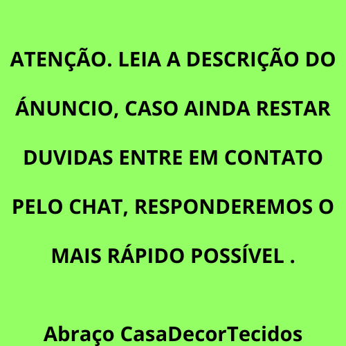 ATENÇÃO ORIENTAÇÕES SOBRE METRAGENS PARA COMPRA 1 UNIDADE = 1 metro comprimento x 1,60 cm largura 2 UNIDADES = 2 metros de comprimento X 1,60 de largura 3 UNIDADES = 3 metros de comprimento X 1,60 de largura 🧵 Tecido Soft Liso – 100% Poliéster O tecido soft liso é sinônimo de maciez, conforto térmico e versatilidade. Produzido em 100% poliéster, possui toque extremamente suave, aparência aveludada e excelente capacidade de aquecimento, sendo perfeito para os dias mais frios. Leve, maleável e com ótimo caimento, é um tecido muito utilizado tanto para vestuário quanto para artesanato e decoração, garantindo conforto e durabilidade no uso diário Principais Características Composição: 100% Poliéster Textura: macia, aveludada e confortável Elasticidade: leve Caimento: maleável Não amassa com facilidade Secagem rápida Alta durabilidade e resistência Indicações de Uso Pijamas e roupas de inverno Blusas, casacos e moletons Mantas e cobertores Roupas infantis Artesanato em geral Forros e detalhes decorativos 🧼 Cuidados com o Tecido Lavar à mão ou em ciclo delicado Não usar alvejante Secar à sombra Não passar ferro ou passar em temperatura mínima 📦 Venda no metro 🚚 Envio rápido e imediato 🎨 Cores lisas e modernas (ver disponibilidade) Ideal para quem busca conforto, praticidade e ótimo custo-benefício em um único tecido.