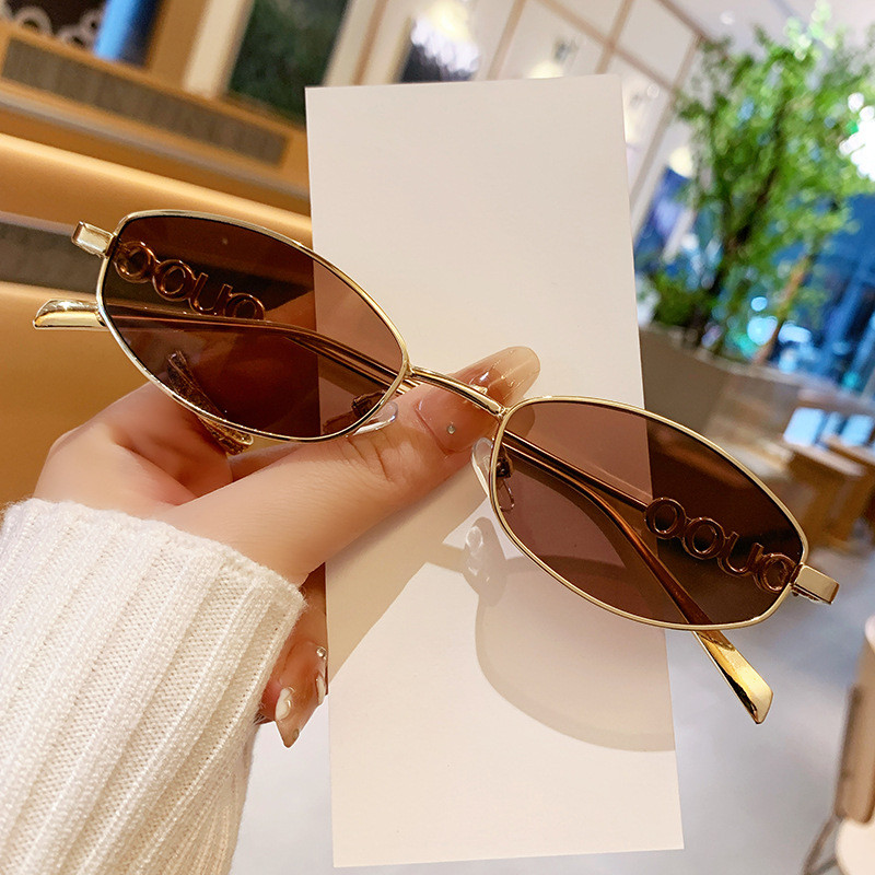 Prosperityuspronto Estoquecod (San9) Nova Moda De Metal Oval Armação Óculos De Sol Femininos Pernas Do Alfabeto