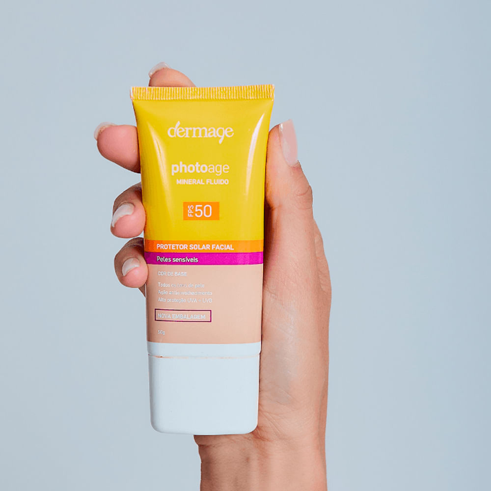 Photoage Mineral Fluido FPS 50 O Photoage Mineral Fluido é um filtro solar 100% físico, também conhecido como protetor solar mineral. Com FPS 50, FPUVA 19 e barreira de cor, protege amplamente contra