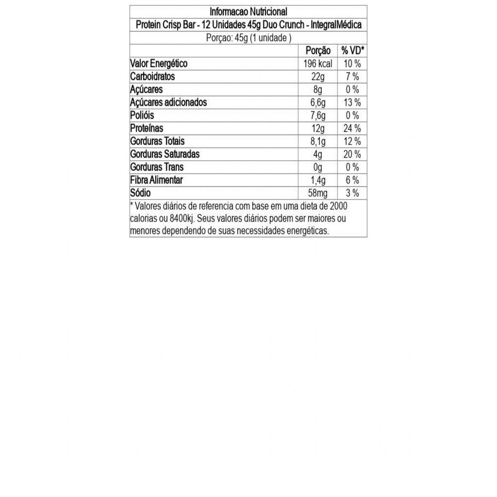 Protein Crisp Bar - 12 Unidades 45g Duo Crunch - IntegralMédica