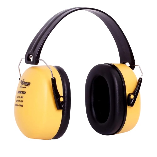 PROTETOR AUDITIVO TIPO CONCHA SUPER MAX - atenuação de 24db Protetor auditivo constituído por duas conchas de ABS na cor amarela, montadas em uma haste de PP na cor preta e fixada nas conchas através de um arame de metal e pinos de ABS. As conchas são recobertas por almofadas externas (laminado de PVC e espuma) e internamente almofadas internas (espuma). UTILIZAÇÃO Proteção da audição do usuário contra níveis de pressão sonora superiores aos estabelecidos na NR15, conforme tabela de atenuação acima. Marca: Plastcor