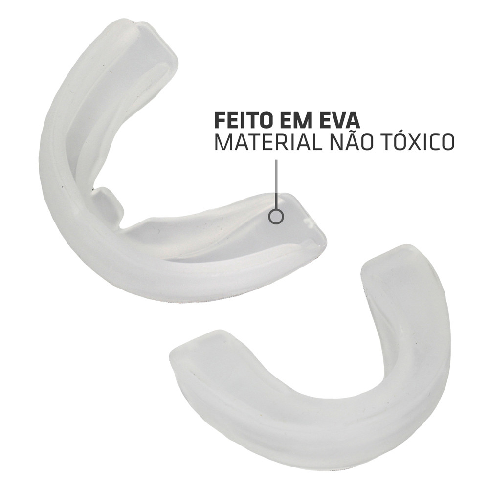 <p>ALTA PROTEÇÃO: O Protetor Bucal Profissional Muvin foi desenvolvido para proteger de uma forma satisfatória a arcada dentária dos praticantes em diversos esportes, especialmente as modalidades de luta <br /> <br /> MATERIAL MOLDÁVEL: O Protetor Bucal é feito em EVA, não é tóxico e possui tamanho único, entretanto, pode ser moldado e dessa forma encaixar perfeitamente na boca, garantindo a proteção nos mais diversos esportes de luta<br /> <br /> MAIS SEGURANÇA: Para garantir ainda mais a proteção em modalidades esportivas como boxe, muay thai, jiu-jitsu, entre outras, o Protetor Bucal possui guias na parte inferior, desenvolvidas para evitar o deslocamento do maxilar <br /> <br /> FÁCIL DE MOLDAR: O processo de moldagem do Protetor Bucal é muito simples. Basta mergulhar em água fervente por dois segundos e depois colocar em torno dos dentes, ajeitar com o polegar na melhor posição e depois pressionar contra os dentes <br /> <br /> VERSATILIDADE: O Protetor Bucal é unissex e está disponível em diversas opções de cores para que você possa escolher aquela que mais combina com você. Independente da cor escolhida, ele virá acompanhado de um estojo vermelho <br /> <br /> O Protetor Bucal Profissional é utilizado em diversos esportes, especialmente as modalidades de contato, como Boxe, Muay thai, MMA, Jiu-Jitsu, Judô, Karate, Taekwondo, Kung fu, Capoeira, entre outras. Também é um item comumente utilizado em esportes como basquete e futebol americano, pois seu uso garante a proteção dos dentes.<br /> <br /> Feito em EVA, é de tamanho único, mas moldável para se encaixar perfeitamente na boca. Além disso, conta com guias na parte inferior para evitar o deslocamento do maxilar. <br /> <br /> O processo para moldar o protetor é simples e garante um perfeito encaixe e proteção. Para isso, ferva dois copos de água em um recipiente e mergulhe o protetor bucal rapidamente, no máximo dois segundos. Retire da água com o auxílio de algum objeto, como uma escumadeira, e esperar esfriar. Após isso, coloque o protetor em torno dos dentes e sem seguida ajeite-o com o polegar até encontrar a melhor posição. Para finalizar, pressione o protetor contra os dentes por alguns segundos. Caso depois desse procedimento ele não tenha ficado com uma forma ideal, é só repetir o processo até que o encaixe fique perfeito e confortável. <br /> <br /> O Protetor Bucal Profissional é unissex e está disponível em nove opções de cores, então você pode escolher aquela que mais combina com você: Neutro, Preto, Branco, Verde, Amarelo, Roxo, Azul, Vermelho ou Pink. Todos acompanham estojo na cor vermelha.<br /> <br /> EVA</p>