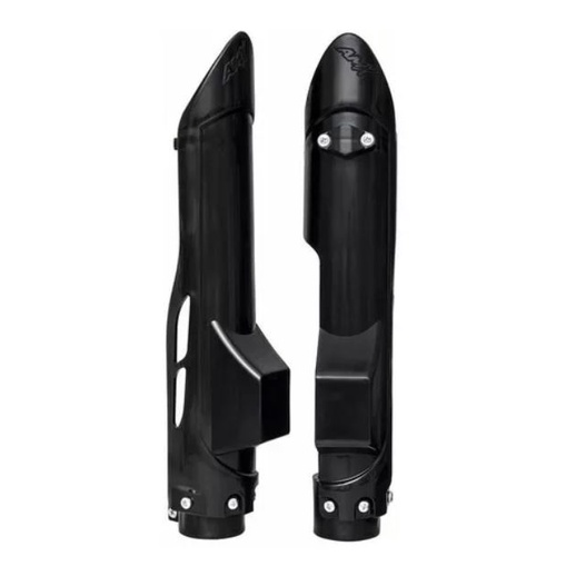 Protetor de Bengala AMX Acessórios AMX oferece seu modelo de protetor de bengalas. Com estrutura reforçada, principalmente nas partes que mais sofrem impacto, ele é fixado através abraçadeiras embutidas na peça. Tem a vantagem de ser aberto na parte traseira, o que facilita a lavagem e não acumula sujeira. O protetor também pode ser adesivado pois conta com boa área de exposição, permitindo maior personalização. Compatível com HONDA CRF250f 2018=> XR250 Tornado XRE 300