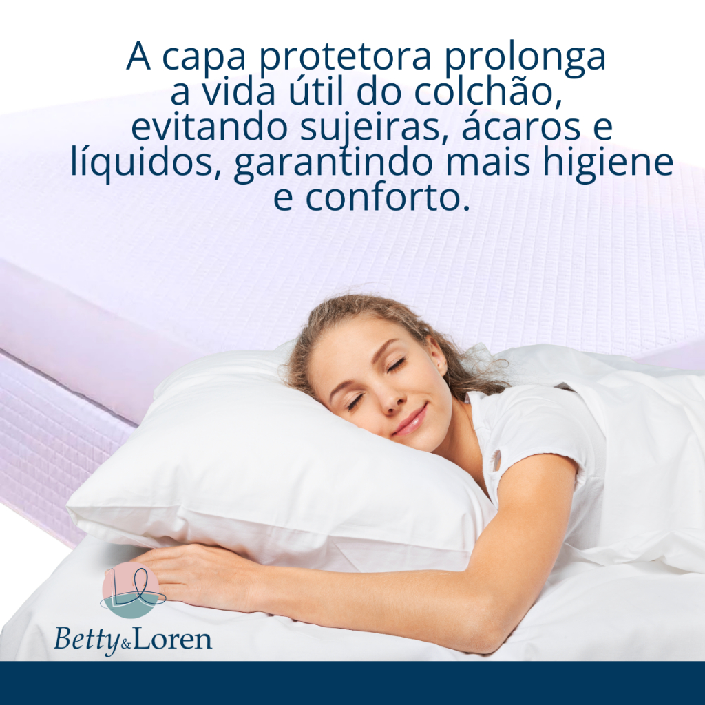 Protetor de Colchão Impermeável O protetor de colchão Betty & Loren foi desenvolvido para oferecer mais conforto, higiene e durabilidade ao seu colchão. Produzido em tecido de alta qualidade, com acabamento matelado, ele garante um toque macio, sofisticado e protege contra sujeiras, poeira e pequenos acidentes, mantendo a cama sempre organizada e aconchegante. Com elástico em toda a volta, o ajuste é perfeito ao colchão, proporcionando praticidade no dia a dia. Além de ser resistente, é fácil de lavar e possui secagem rápida, ideal para a rotina moderna. Diferenciais: • Acabamento matelado elegante e reforçado • Protege contra poeira, sujeiras e desgaste diário • Elástico de alta resistência para perfeito encaixe • Fácil de lavar e secagem rápida • Mais aconchego e durabilidade para seu colchão Medidas disponíveis: • Berço 0,70 m x 1,30 m • Solteiro 0,90 m x 1,98 m • Casal 1,38 m x 1,98 m • Queen: 1,58 m x 1,98 m • King: 1,93 m x 2,03 m O protetor de colchão Casal Queen e King é a escolha perfeita para quem deseja unir praticidade, proteção e elegância em um só produto.