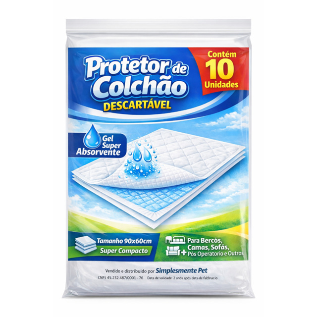 Protetor de Colchão Descartável 90x60cm com Gel Super Absorvente – Pacote com 10 Unid | Para Berço, Cama, Sofá