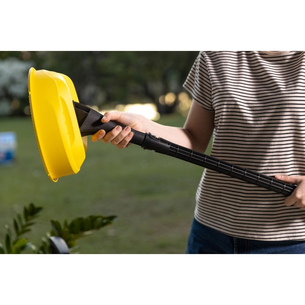 Utilizado nas lavadoras de alta pressão de uso ocasional para evitar respingos. Seus 2 jatos de alta pressão espalham para os demais locais aplicados na parte inferior do acessório para realizar a limpeza da superfície sem que a água se espalhe longe da área aplicada. -Ideal para limpeza de áreas internas Equipamentos compatíveis: TODAS LAVADORAS DE USO OCASIONAL EXCETO KÄRCHER COMPACTA