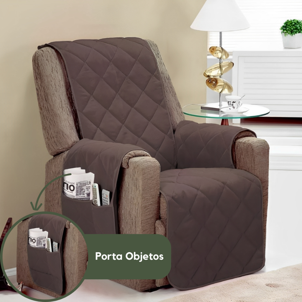 Protetor De Sofá Capa Poltrona Do Papai 1 Assento Matelado Com Bolso Lateral Para Objetos