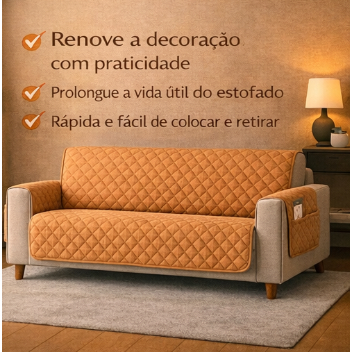 Protetor de Sofá 3 Lugares King, 3 Lugares Padrão, 2 Lugares e Poltrona Elegância, Praticidade e Proteção Completa Renove sua sala e mantenha seu sofá protegido com este protetor de alta qualidade. Com um design matelado sofisticado que combina estilo e funcionalidade para proteger contra manchas, poeira e desgaste diário. Destaques do Produto ✔ Proteção Completa: Preserva a integridade do sofá sem comprometer a estética. ✔ Bolsos Funcionais: Perfeito para armazenar controles, revistas e outros itens essenciais. ✔ Acabamento Sofisticado: Bainha reforçada para um toque de charme e durabilidade. Dimensões Aproximadas Protetor 4 Lugares ✔ Assento: 2,20m de largura ✔ Capa Completa: 2,20m x 2,20m ✔ Braços: 40cm x 80cm cada ✔ Medida Total (com braços): 3,10m x 2,92m Protetor 3 Lugares King ✔ Assento: 1,80m de largura ✔ Capa Completa: 1,80m x 1,90m ✔ Braços: 40cm x 80cm cada ✔ Medida Total (com braços): 3,10m x 1,90m Protetor 3 Lugares Padrão ✔ Assento: 1,50m de largura ✔ Capa Completa: 1,50m x 1,90m ✔ Braços: 40cm x 80cm cada ✔ Medida Total (com braços): 3,10m x 1,90m Protetor 2 Lugares ✔ Assento: 1,00m de largura ✔ Capa Completa: 1,00m x 1,90m ✔ Braços: 40cm x 80cm cada ✔ Medida Total (com braços): 3,10m x 1,90m Protetor Poltrona ✔ Assento: 0,50m de largura ✔ Capa Completa: 0,50m x 1,90m ✔ Braços: 40cm x 80cm cada ✔ Medida Total (com braços): 3,10m x 1,90m Composição ✔ Tecido Superior: 100% Poliéster ✔ Manta Interna: 100% Poliéster ✔ Forro: 100% Polipropileno Instruções de Uso e Lavagem ✔ Lavável à máquina no modo delicado. ✔ Para medir seu sofá corretamente, considere apenas a largura do assento, excluindo os braços. ✔ Os bolsos estão posicionados em um dos braços, podendo variar o lado. Garanta mais conforto, praticidade e elegância para sua sala. Compre agora e transforme seu ambiente!