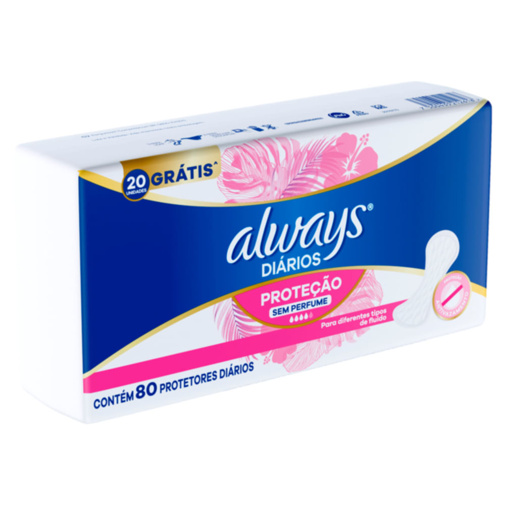 Protetor Diário Always Proteção Sem Perfume Com 20 Gratis Total 80 Unidades